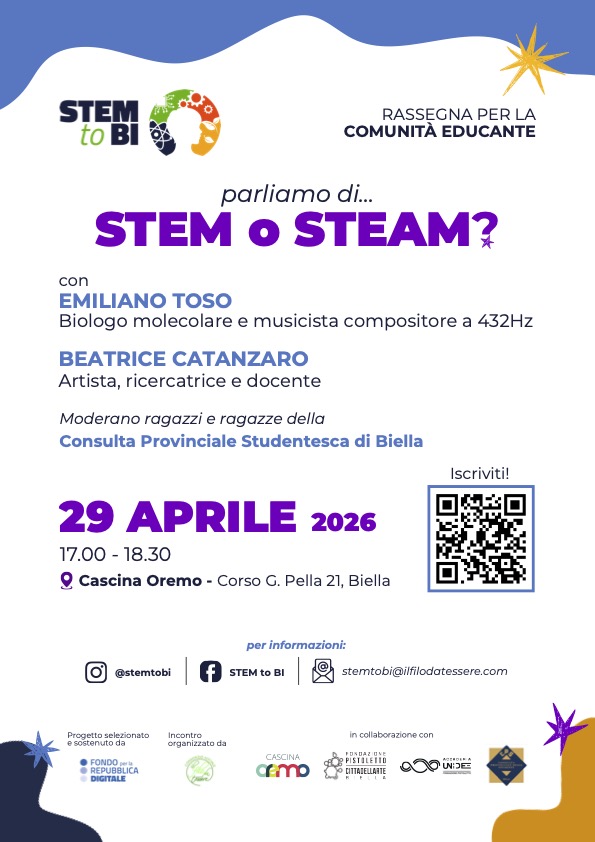 A chi si rivolge: l’incontro è rivolto alla Comunità Educante: insegnanti, educatrici, educatori, famiglie, cittadinanza. Un’occasione per usare le STEM come chiave di lettura del presente e come strumento per immaginare insieme ciò che verrà.